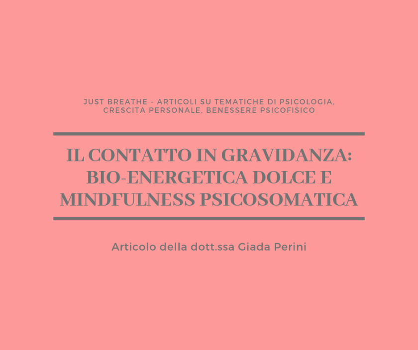 Durante la gravidanza coltivare il contatto con il corpo significa diventare consapevoli di attraversare un periodo di cambiamento molto intenso, un periodo che porta mutamenti nell’umore, nelle emozioni, cambiamenti ormonali e fisici che influenzano il modo di percepire il proprio corpo e che manifestano con tutta la loro forza la presenza dell’altro, del bambino, dentro di sé. Per facilitare questa fase della vita sono utili gli esercizi di bio-energetica dolce e la pratica della Mindfulness psicosomatica.